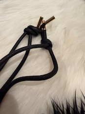 ループエンドはゴールドで、裏地にはサテンの厚地を入れているので、生地が伸びたりもなく、