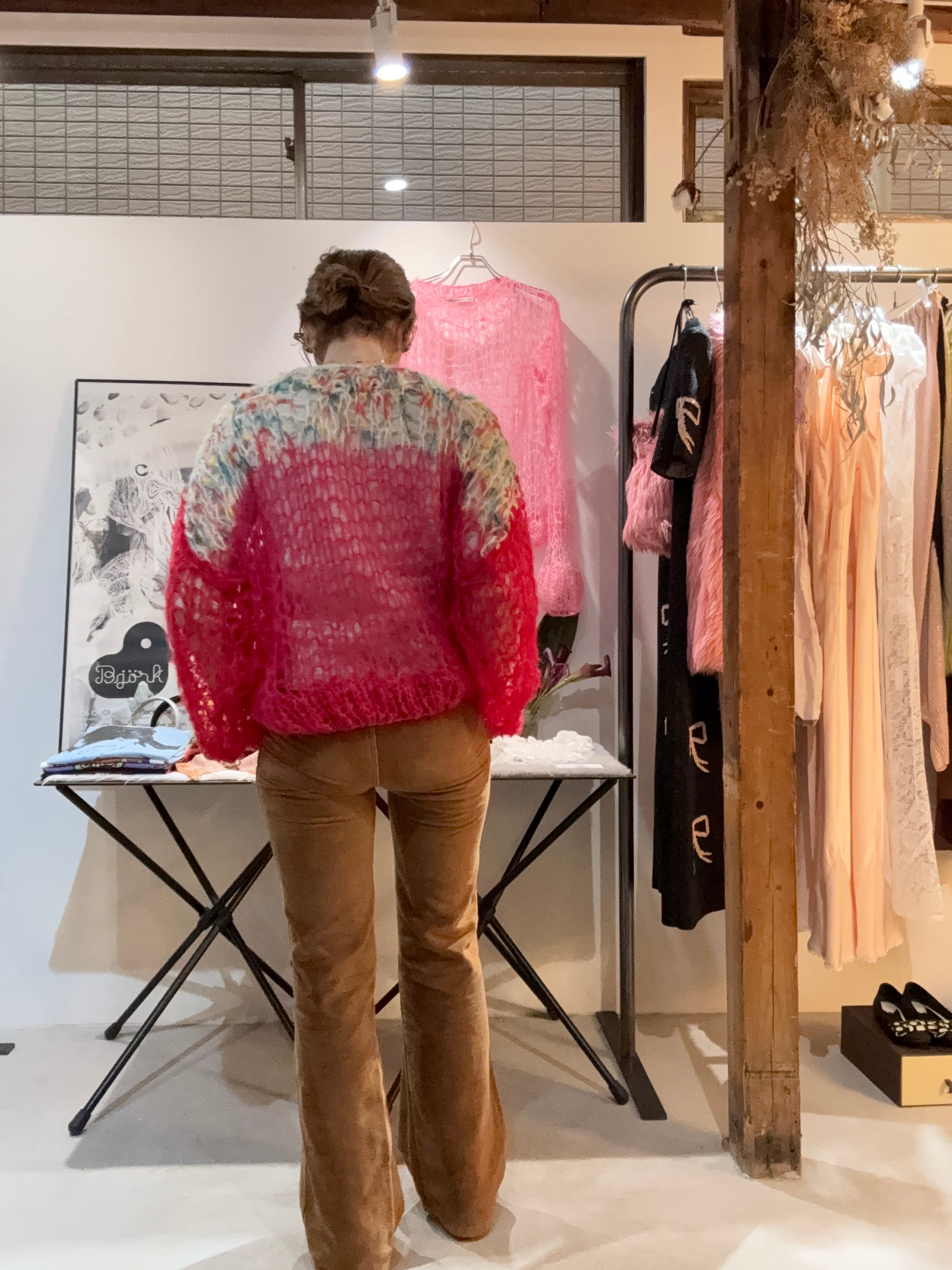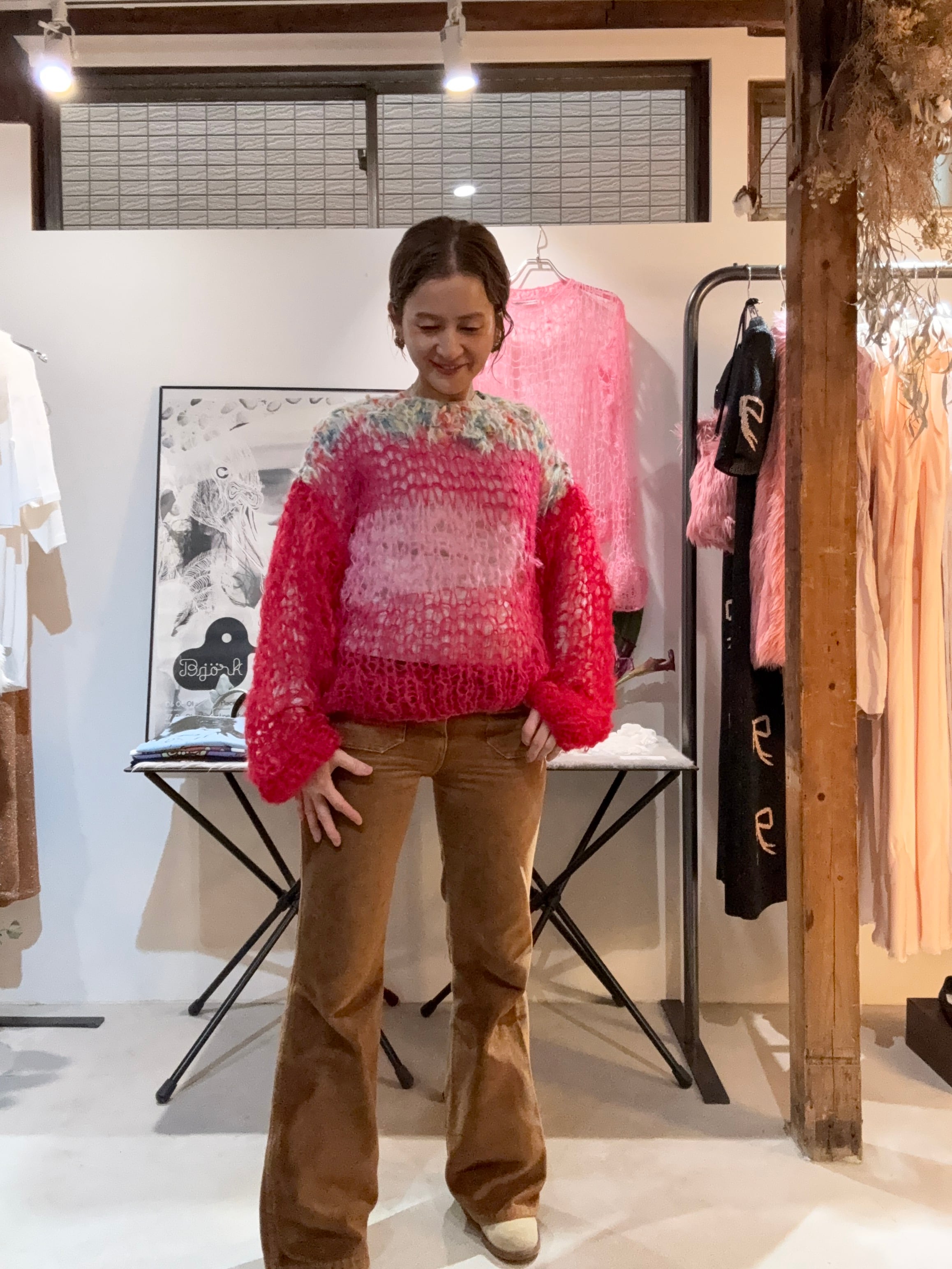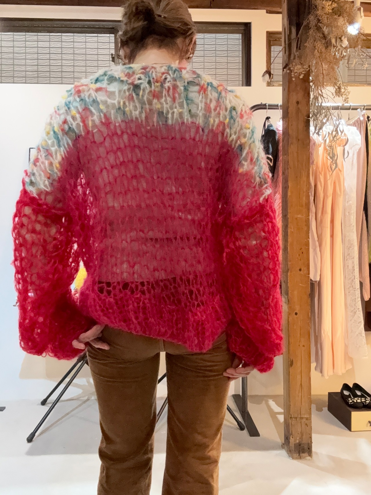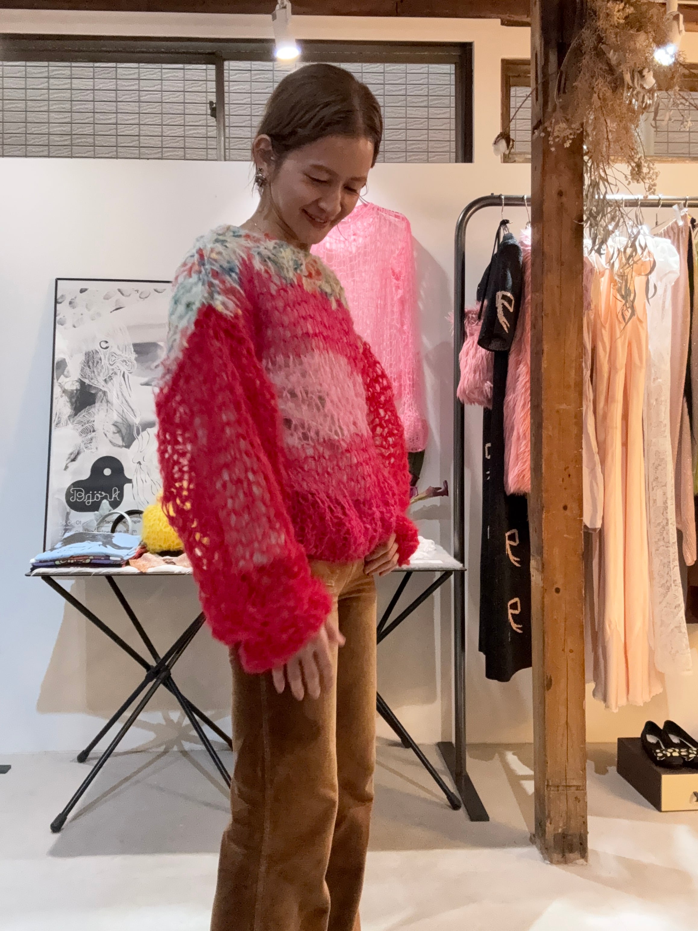 着込んでいくと、全体的に若干伸びますが、それを味として着ていただくknitです。